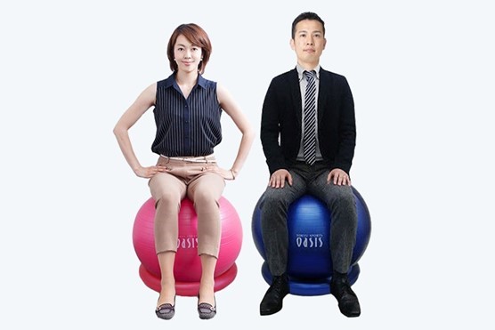 日本は一日の座位時間が世界で一番長い国であると、オーストラリアシドニー大学が行った「世界20か国における平日の総座位時間」の調査で発表されています。また、日本のオフィスワーカーのほとんどがデスクワークを行っていることが、国民の座り時間を長くしている一因ともいわれています。座位時間が長くなると腰痛や肩こりの原因となるだけでなく、肥満・がん・脳血管疾患などの健康リスクが高まるので注意が必要です。そのため、椅子として使用することで座り時間を運動時間に変えることができる「バランスボール」の活用を通し、オアシスは企業・団体の健康経営をサポートしたいと考えています。