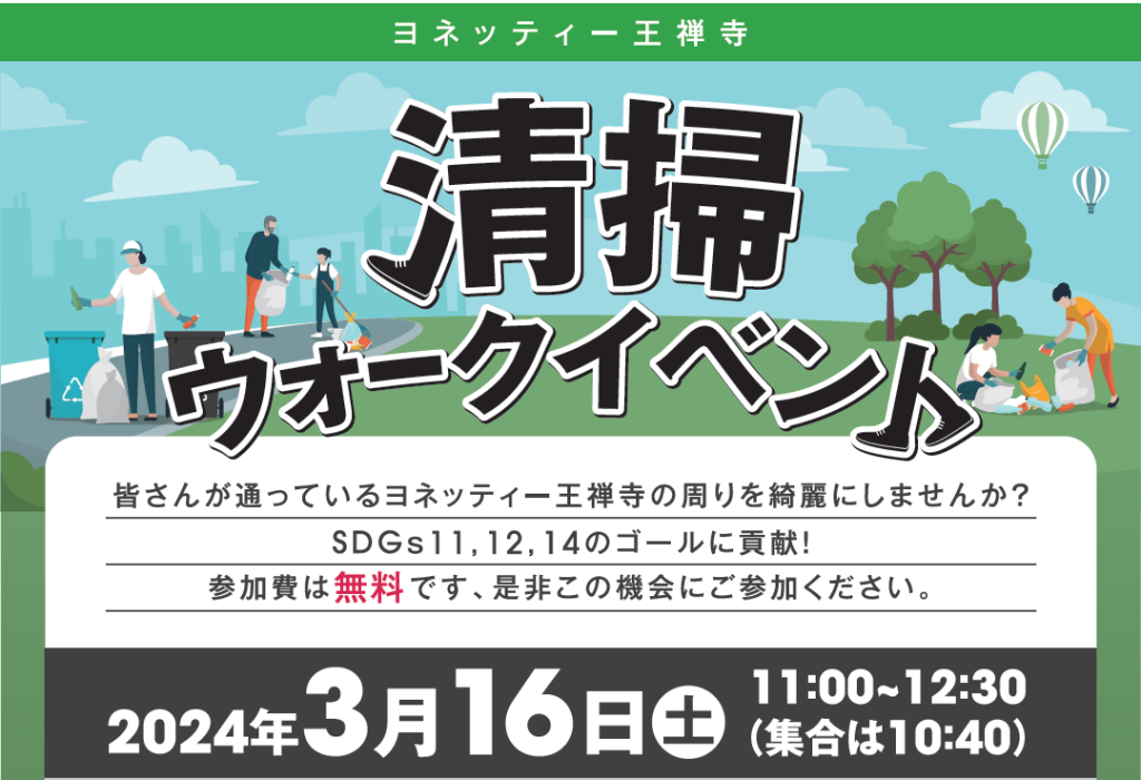 「Well-being First!」を企業ミッションに掲げる、株式会社東急スポーツオアシス(本社:東京都墨田区、代表取締役社長:山岸 通庸、以下「オアシス」)は、2024年3月16日(土)に川崎市より運営を委託されているヨネッティー王禅寺にて「清掃ウォーク」を開催いたします。