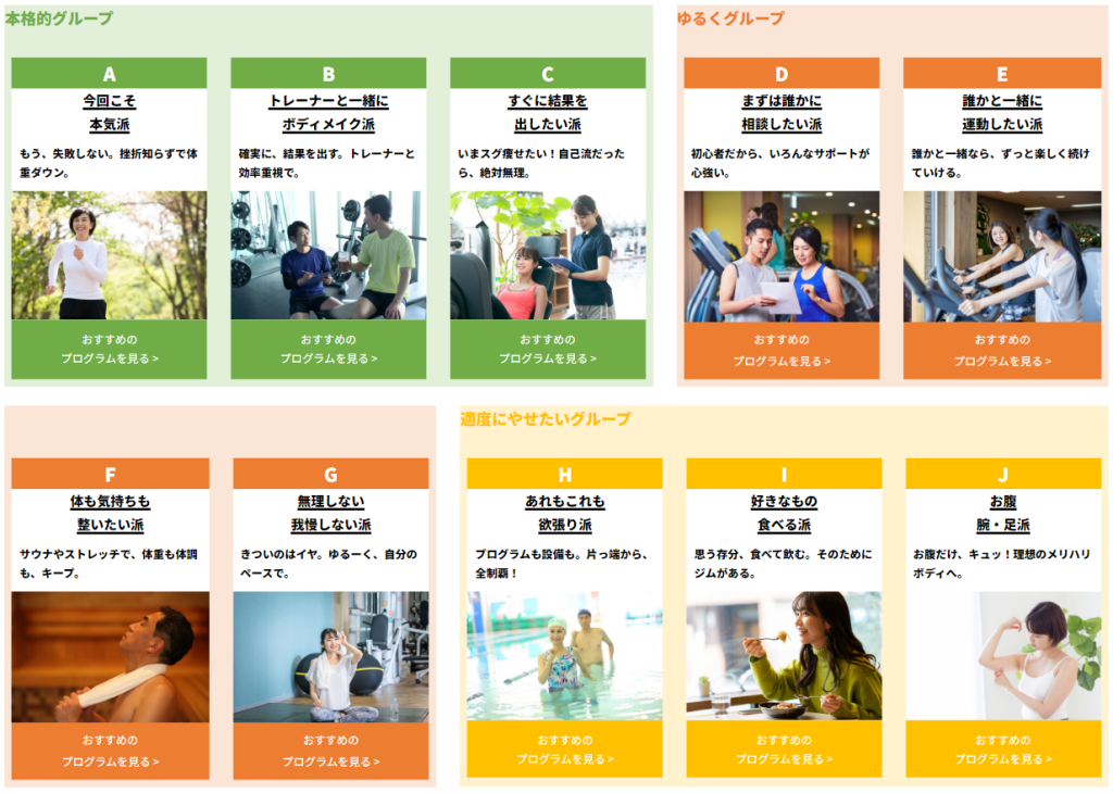 「ダイエットタイプ別おススメプログラム」をご用意しております