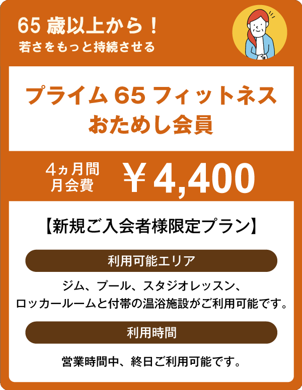 ●プライム65フィットネスおためし会員は65歳以上であることが条件です。