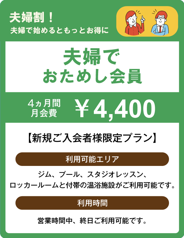 ●夫婦でおためし会員は同時入会、18歳以上、戸籍上夫婦であることが条件です。