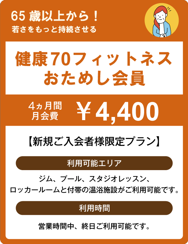 ●健康70フィットネスおためし会員は65歳以上であることが条件です。