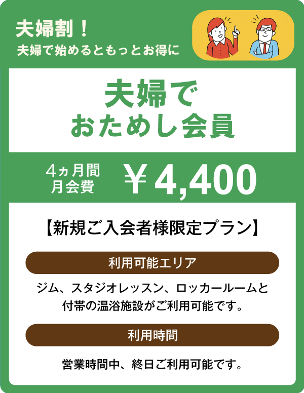 ●夫婦でおためし会員は同時入会、18歳以上、戸籍上夫婦であることが条件です。