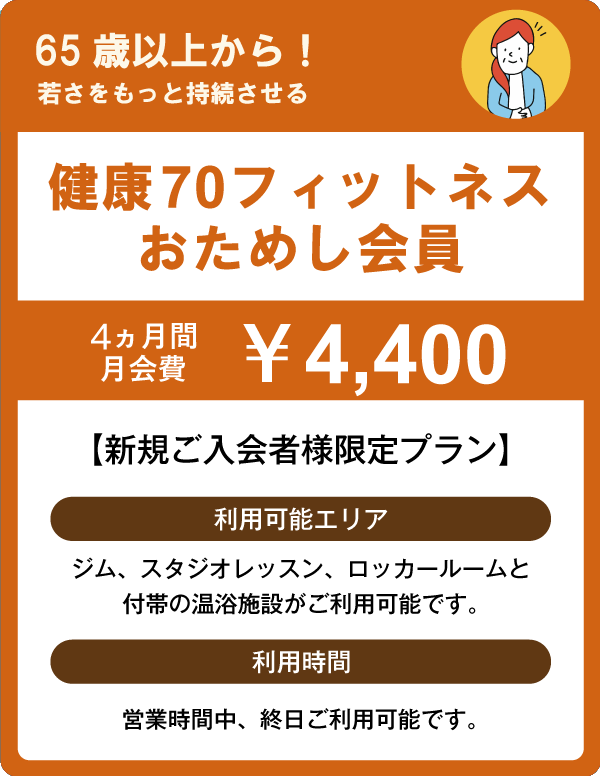 ●健康70フィットネスおためし会員は65歳以上であることが条件です。