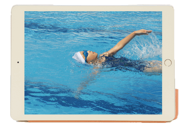(2)プールサイドのタブレットで泳ぎをチェック!
