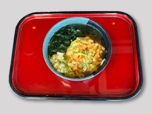 ・しょうゆラーメン(750円) ・塩ラーメン(750円) ・味噌ラーメン(750円) ※150円プラスで大盛(1玉→1.5玉) ・野菜かき揚げうどん(620円) ・きつねうどん(580円) ・わかめうどん(580円) ※120円プラスで大盛(1玉→1.5玉) ・焼きうどん(しょうゆ味)(590円) ・焼きホルモンうどん(650円) ・ナポリタン(670円) ・ミートスパゲティ(670円) ・ボンゴレスパゲティー(670円) ・焼きそば(550円)