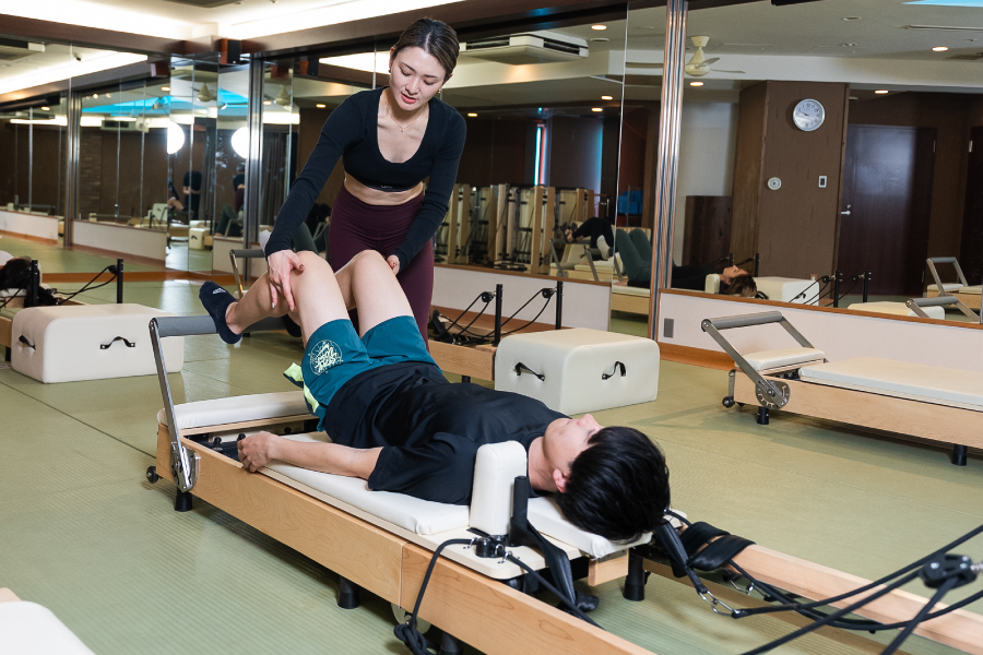 少人数制のクラス「Rhythm Reformer(リズムリフォーマー)」では、ピラティスマシンのリフォーマーを使用し、肩こりや腰痛の予防、ストレス解消を目指します。現代の多様なライフスタイルに対応し、専門性の高いインストラクターが個々の悩みに寄り添いながら丁寧にサポート。初心者でも安心して参加できるプログラム内容です。