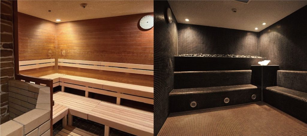 温度湿度が異なったサウナで癒しのひとときをお楽しみください。