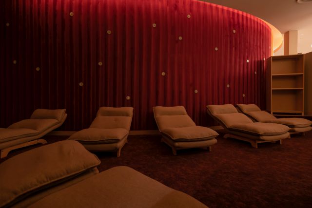 お風呂やトリートメント後の心地よい気分の中、ゆっくりとお過ごし頂けるリラクゼーションスペースです。