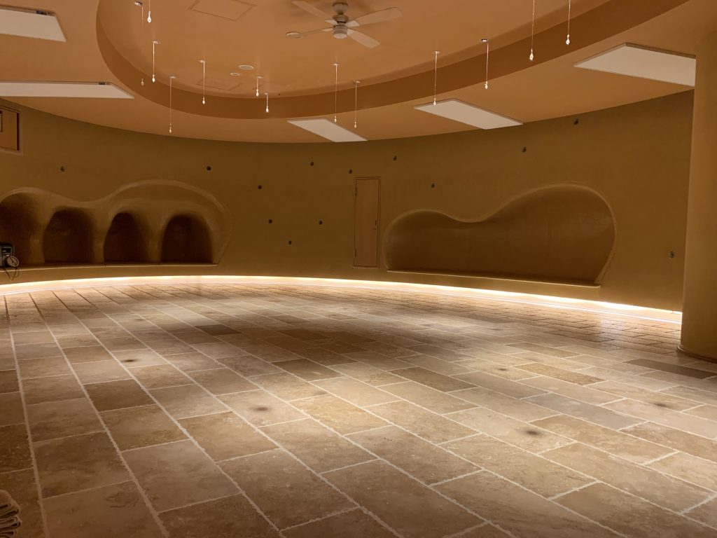 トラバーチンという古代ローマのコロッセオなどに使用される石材を敷き詰めたストーンスタジオです。