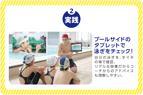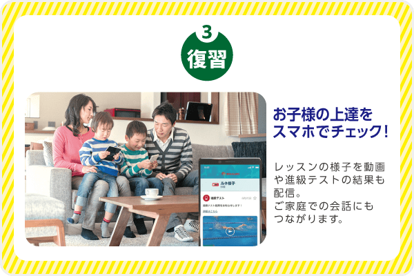 スイミングレッスンがパワーアップ!お子様の成長をサポートするオンラインサービスと、自分の泳ぎを映像で確認できるシステムを使ったレッスンで、更なる上達へ導きます。ご期待ください!