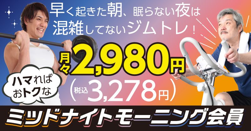【特化型新プラン】深夜から早朝までお得にジム活!『ミッドナイトモーニング会員』のご紹介