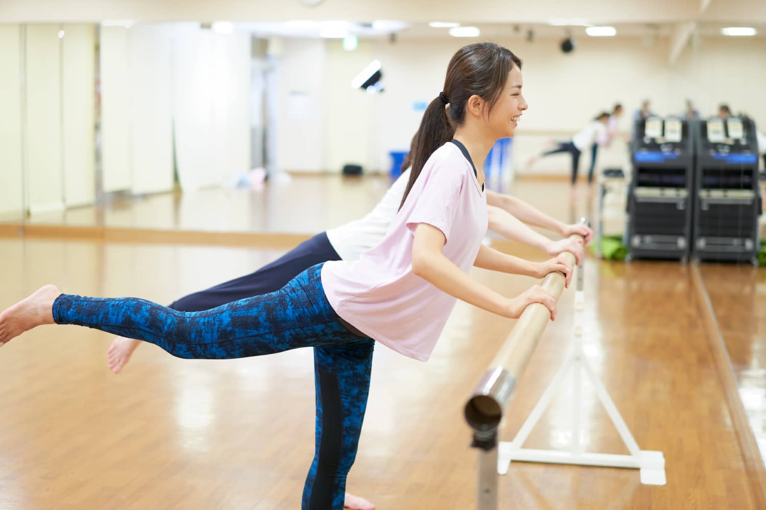 バーを使ってストレッチやバレエの動きを行い、体幹を鍛え美しい姿勢を