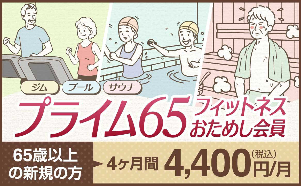 【65歳からOK!新規限定4,400円(税込)/月】プライム65フィットネスおためし会員募集!始めよう運動習慣