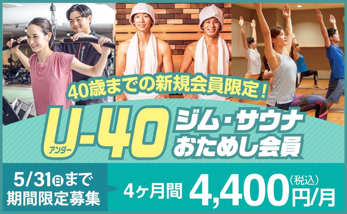 【期間限定】中学生~40歳限定!4ヶ月間・月額4,400円(税込)「アンダー40ジム・サウナおためし会員」募集中