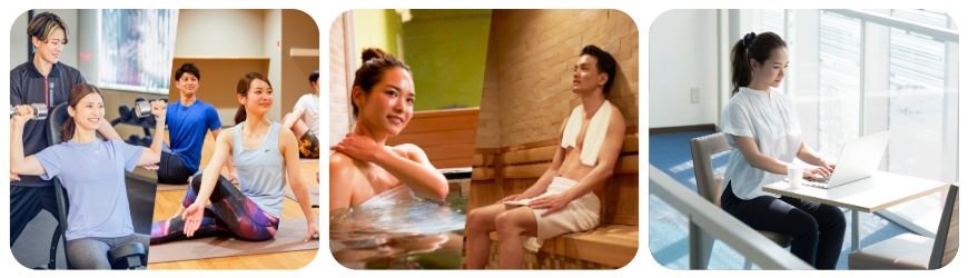 利用可能エリア ジム・スタジオ・サウナスパ・ラウンジ・リラクセーションエリア