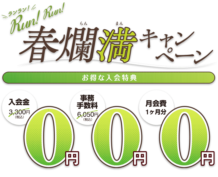 入会金+事務手数料+月会費1ヶ月分=0円!
