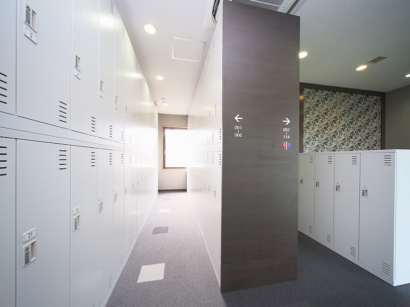 清潔で広々としたロッカールームです。施設ご利用中、お1人様おひとつご使用いただけます。お好きな場所をご利用ください。