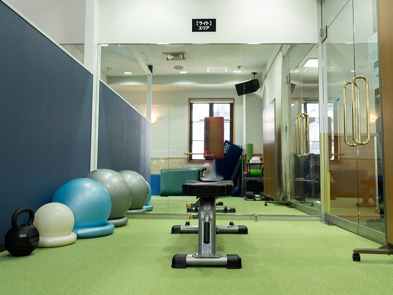 - ■ジム(レジスタンスマシン、ブーティビルダー、有酸素マシン、パーソナル専用ライトエリア、パーソナル専用ミドルエリア、パーソナル専用ハードエリア、フリーウェイトエリア)