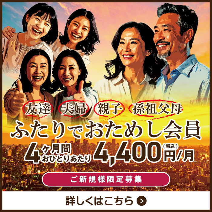 【ご新規様限定募集!】2人で始めるとお得!「ふたりでおためし会員」4ヶ月間おひとり4,400円(税込)/月