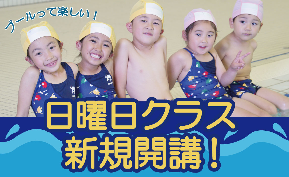 2025年10月度より、日曜日クラスがスタートします! 皆様が通いやすいクラスを新設しました! 是非この機会にスイミングを始めよう!