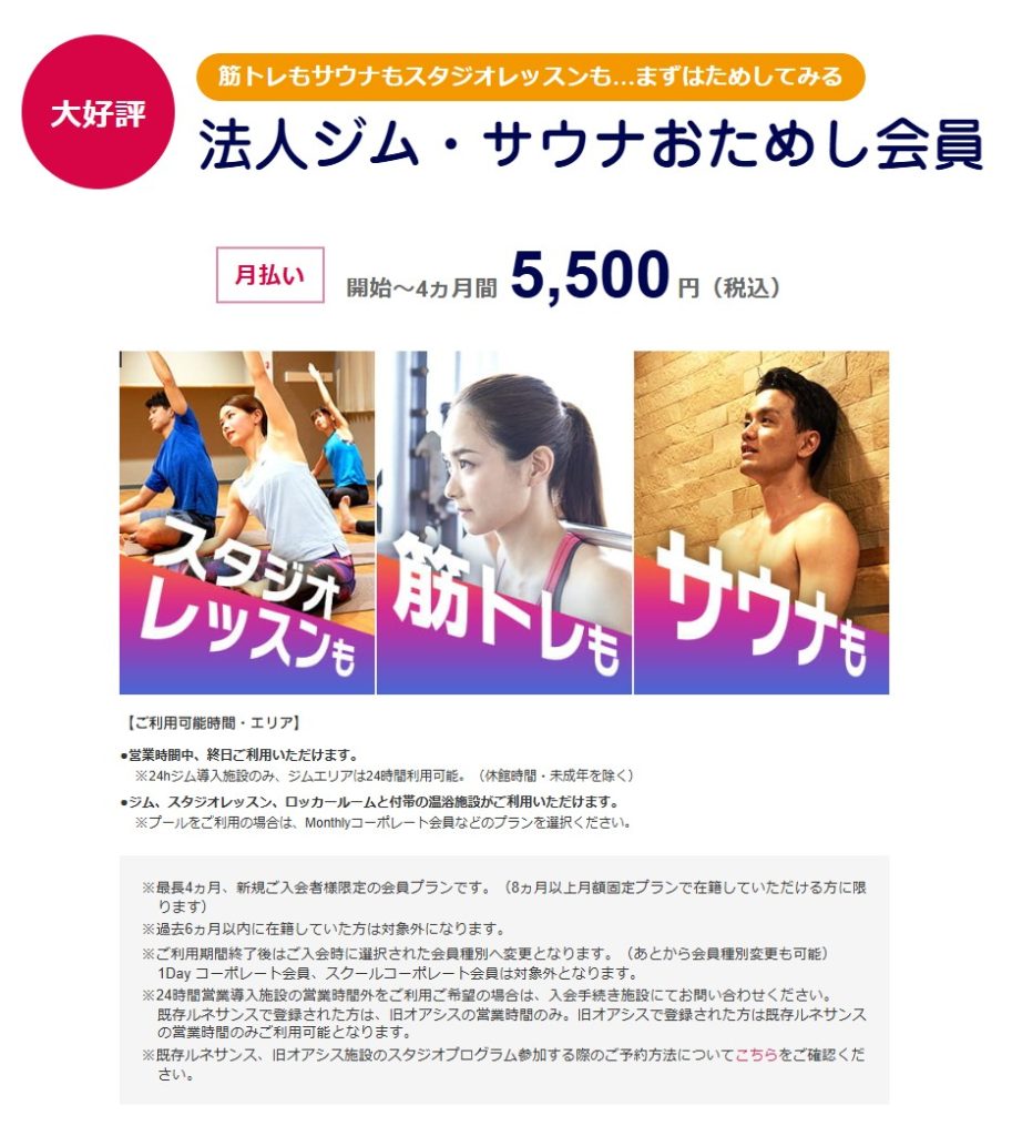 ⇒例)Monthlyコーポレート会員:10,450円(税込)/月  レギュラー会員:14,366円(税込)