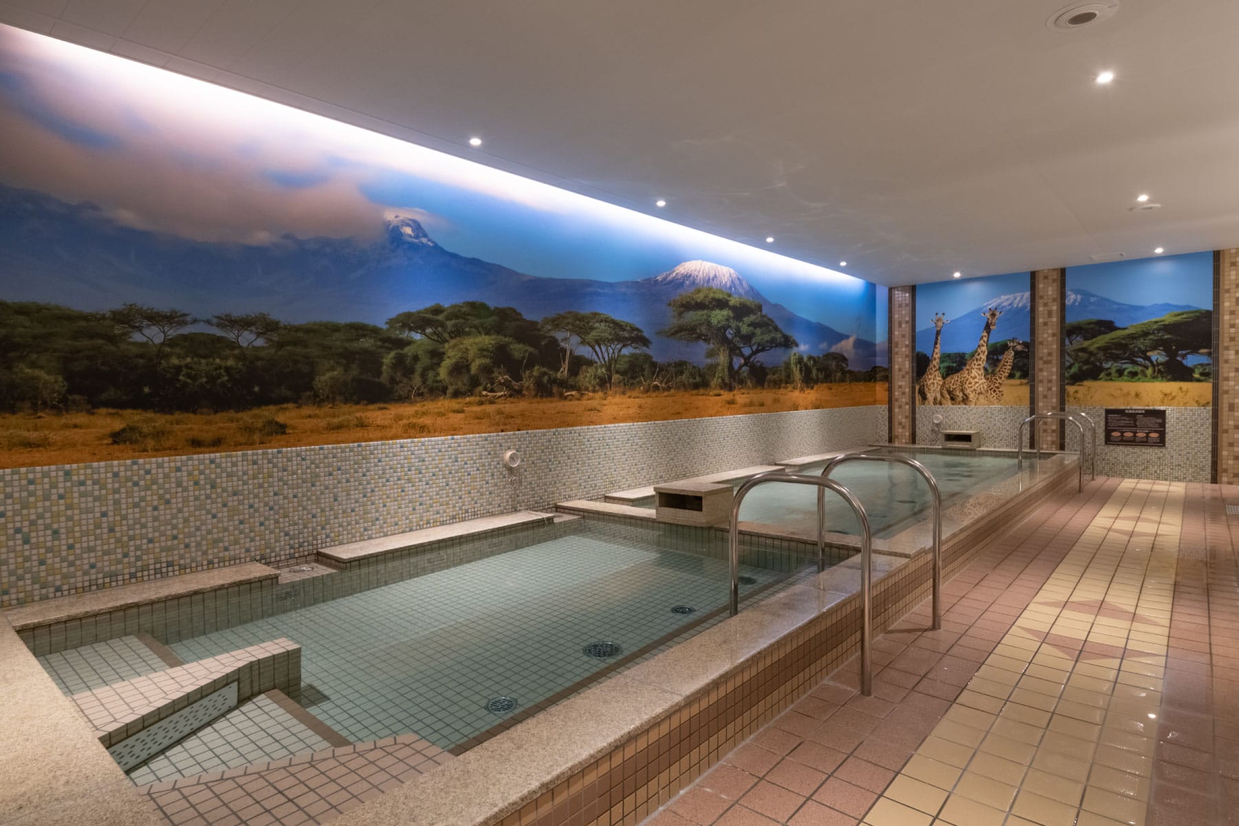 サバンナを基調とし、炭酸泉・電気風呂を導入した浴室。水温を31度前後に保ち、季節を問わず水を楽しめる光あふれたプール。まるで自然の中にいるかのような開放感の中で、心ゆくまで運動・リラクゼーションを楽しんでいただけます。