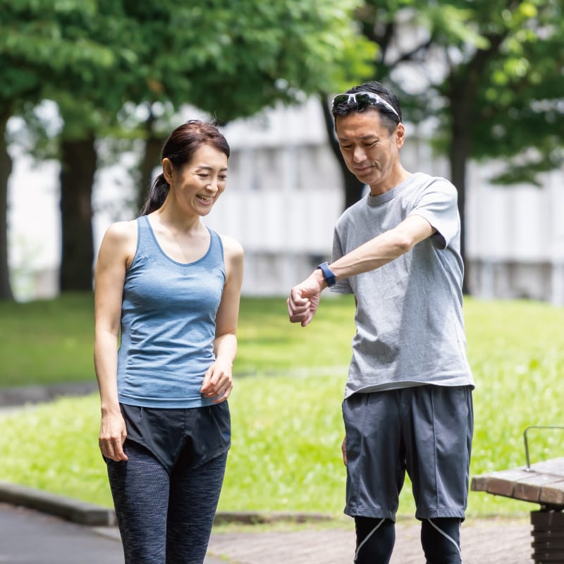 ウェアラブルデバイス(腕時計型端末)と連携することで、手軽に運動のログを見ることができます。