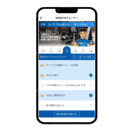 あなたの為にゴールの設定からそれに合った運動の提示、習慣化のサポートをWEBGYMトレーナーが行います。